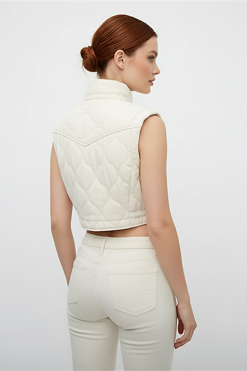 Transform any outfit from simple to stunning with the unique layering power of this quilted vest. Its distinctive texture and cropped length make it exceptional for adding depth and interest. Whether pairing with casual jeans for brunch or layering over smart trousers for the office, this vest acts as the perfect finishing touch, effortlessly bridging casual and elegant.