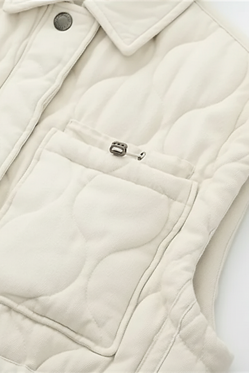 This Quilted Cotton Vest is meticulously designed for comfort and contemporary style. It offers a relaxed, comfortably loose fit throughout the body, tailored for effortless layering over various tops. The silhouette provides a flattering drape that complements diverse body types, ensuring a chic, unrestrictive wear while maintaining a refined aesthetic.