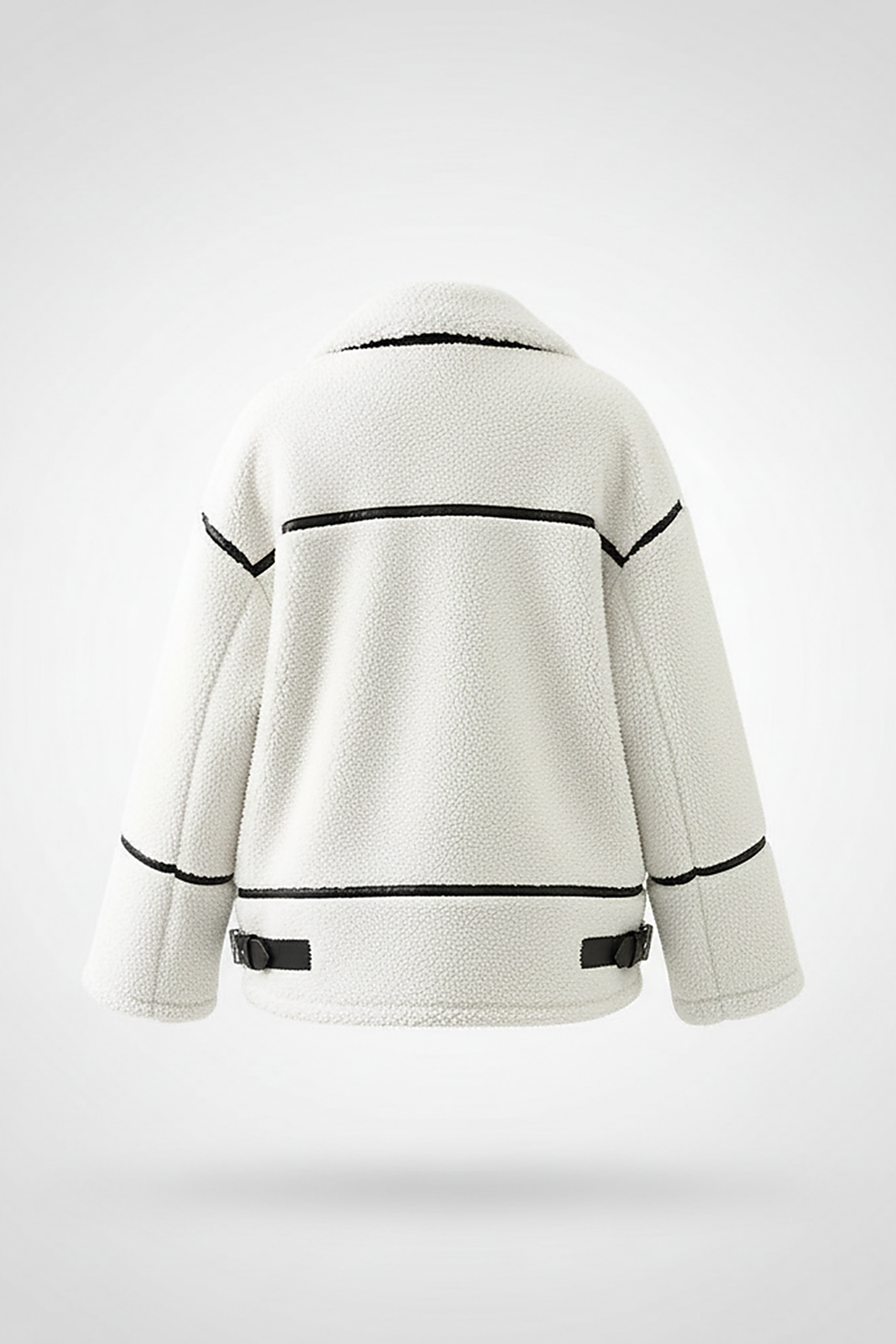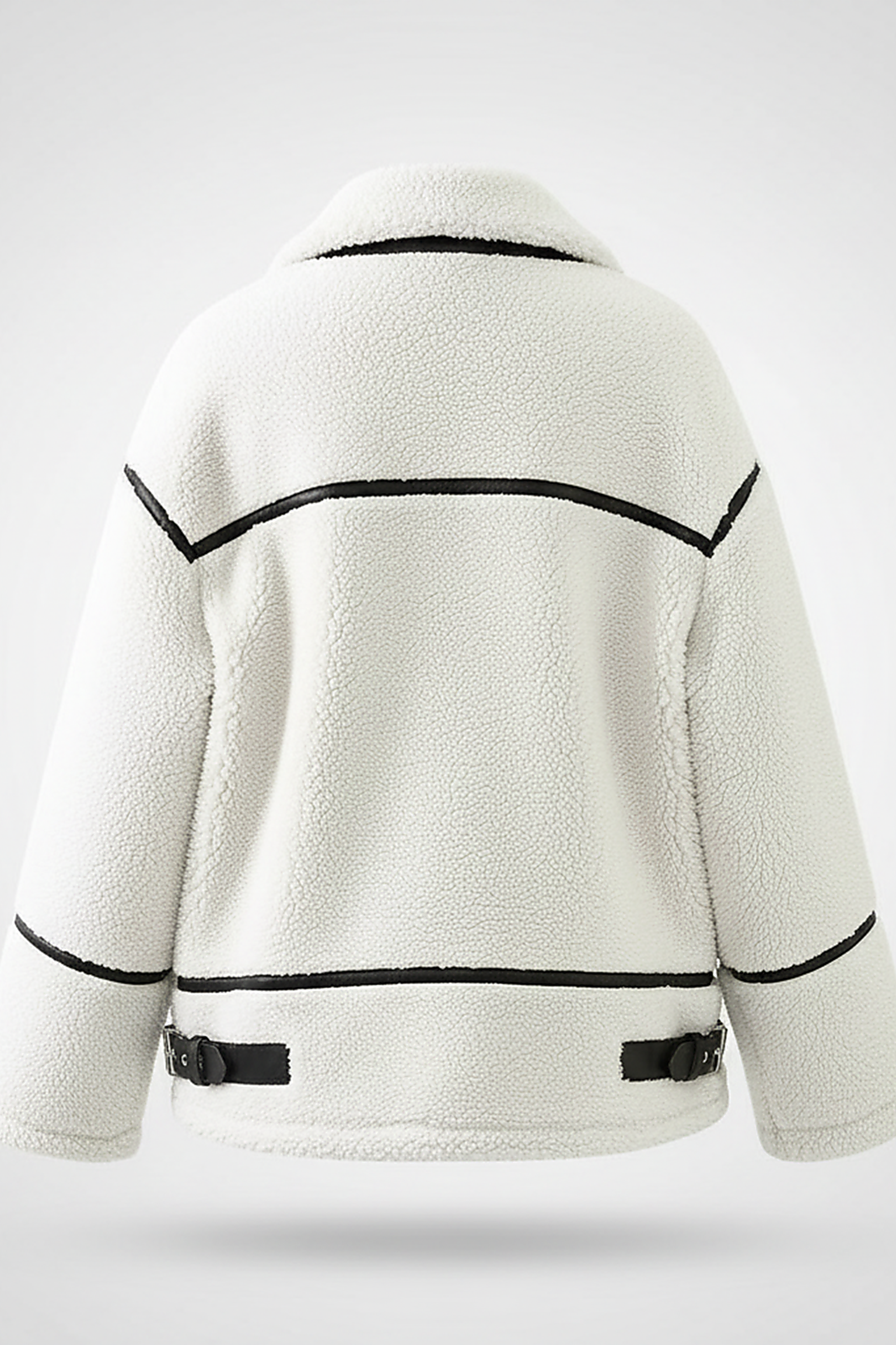 - **Chic Contrast Design:** Elevate your ensemble with the jacket's distinctive contrast color design, a thoughtful detail that introduces a modern and sophisticated edge. The striking black trim against the creamy faux lamb wool creates a visually dynamic aesthetic, transforming a classic silhouette into a contemporary fashion statement that effortlessly captures attention and adds a refined twist to any outfit.