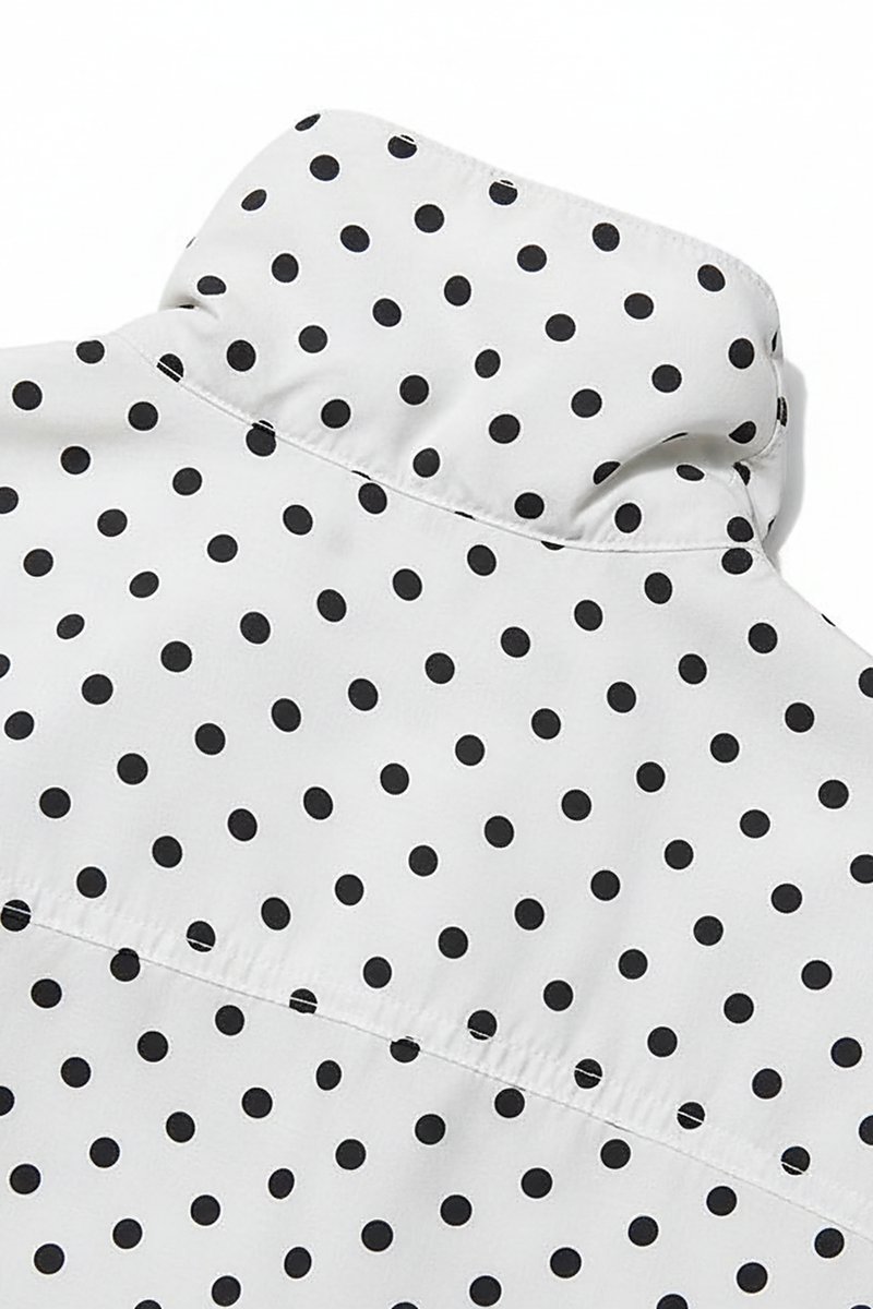 Elevate your casual wardrobe with a chic polka dot print. This timeless pattern brings a playful yet polished sensibility to your everyday style. The classic black polka dots against a crisp white backdrop create a captivating visual that is both striking and versatile, ensuring you make a fashionable statement with ease. Perfect for adding a touch of whimsy to your loungewear or a dash of elegance to your weekend ensembles, this print is designed to turn heads and spark joy.