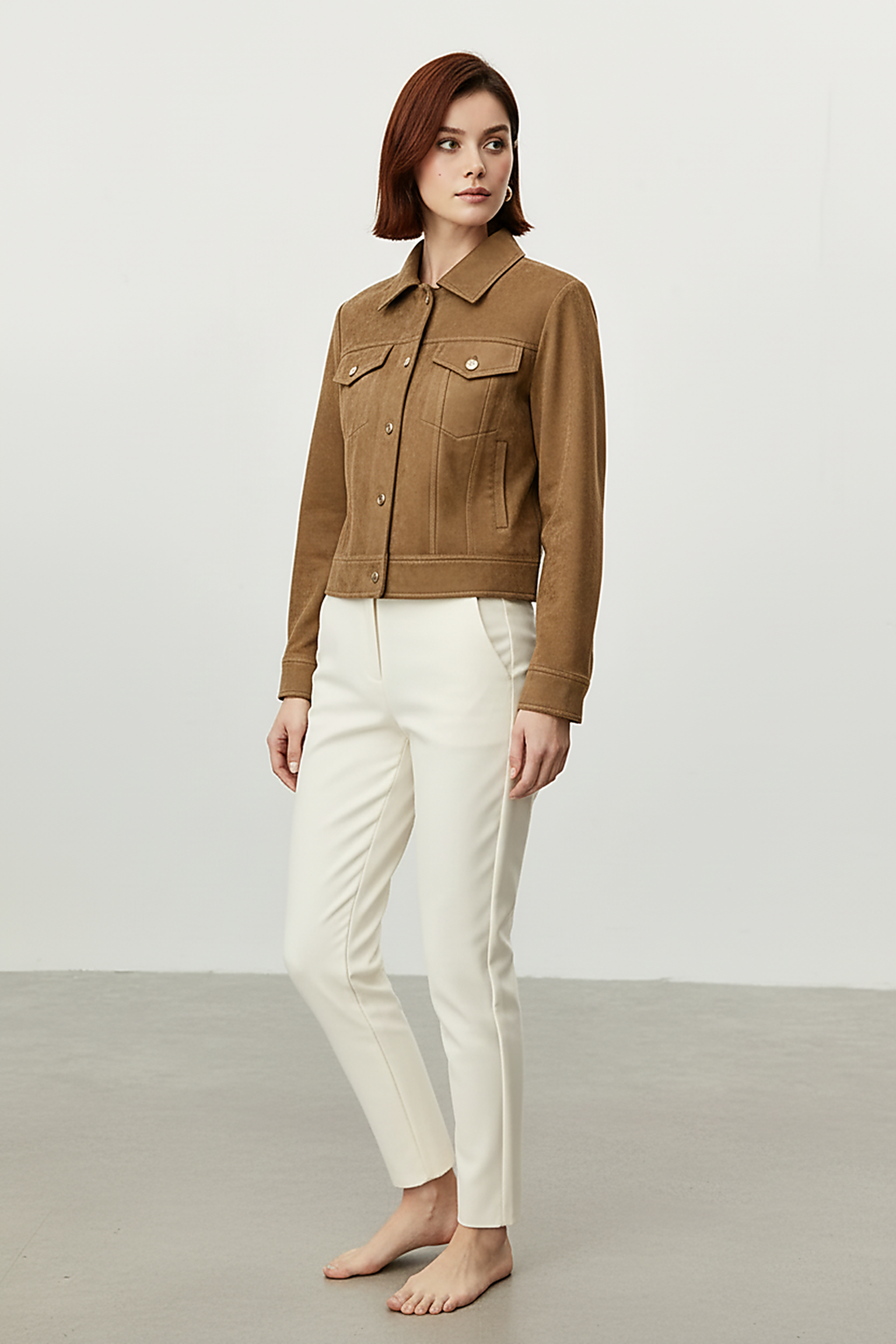 The Sentubila Faux Suede Utility Jacket is designed with a relaxed, slightly cropped fit that offers a modern and flattering silhouette. This intentional cut allows for comfortable layering over a variety of garments, from thin knits to substantial sweaters, without feeling restrictive. The relaxed nature ensures ease of movement, while the subtle cropping creates appealing proportions.