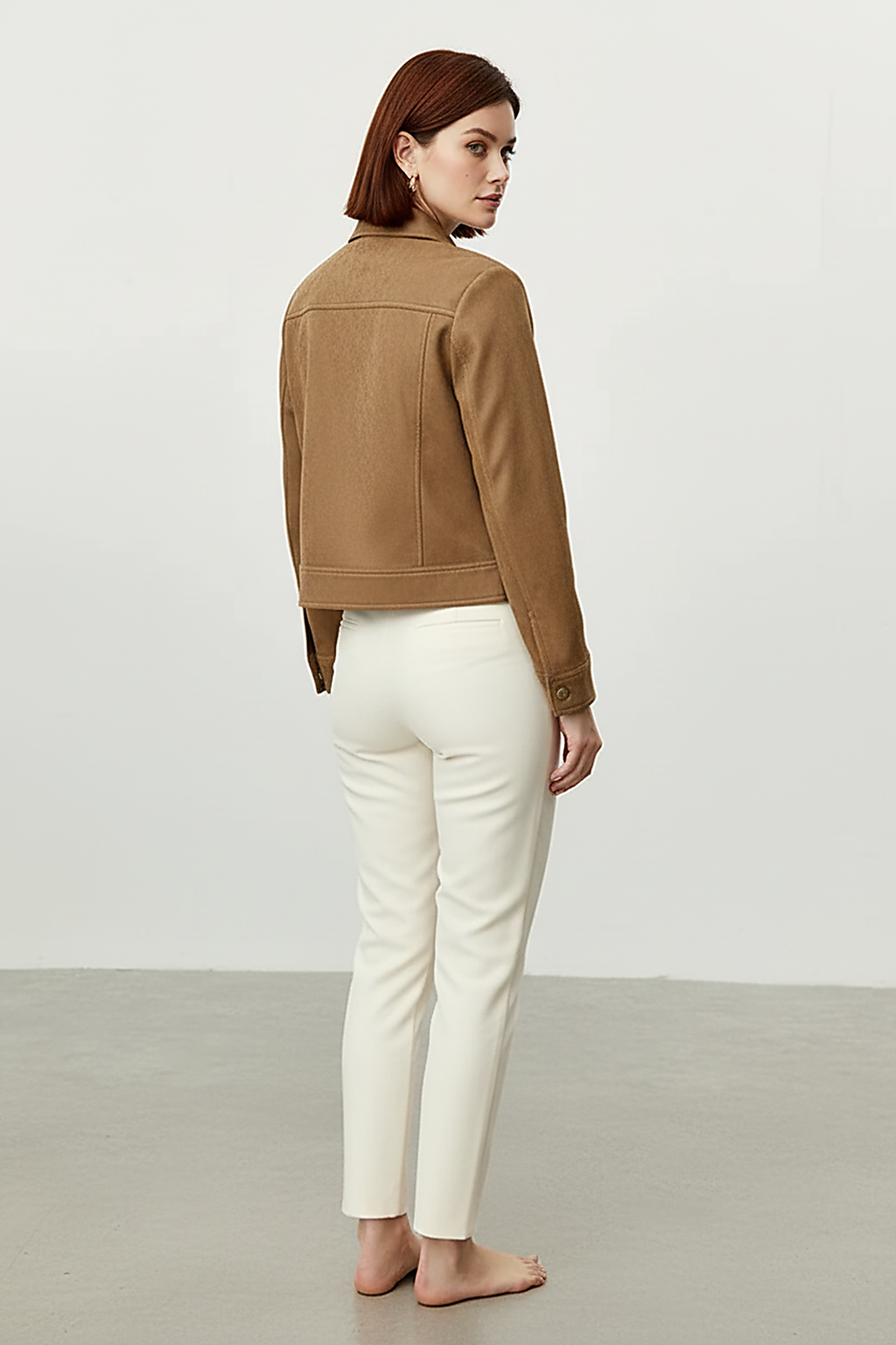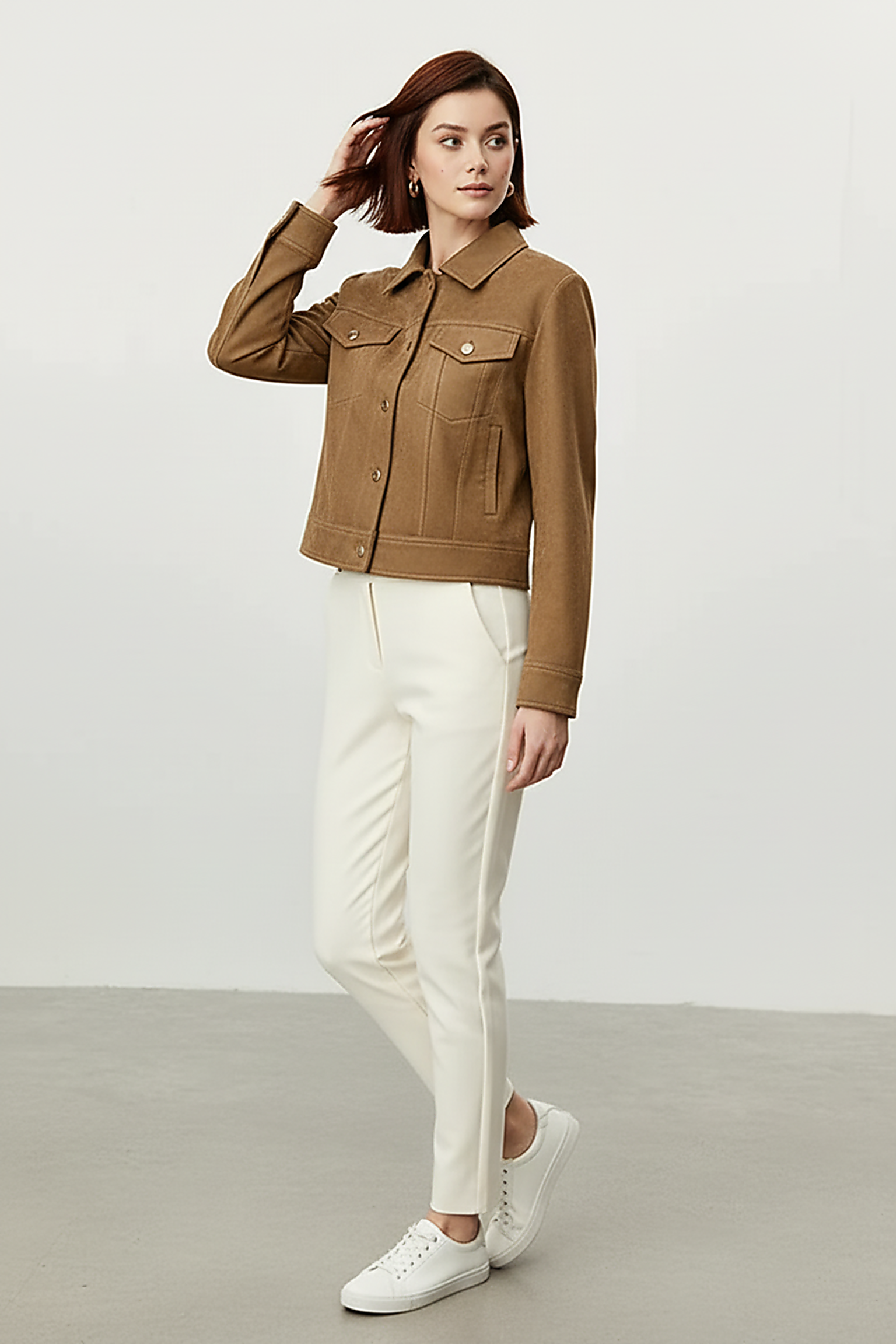 For a Sophisticated Urban Edge: Layer the jacket over a fine-gauge knit turtleneck in a complementary neutral tone. Pair with impeccably tailored wool trousers or sleek faux leather pants, finishing with polished ankle boots. Add minimalist gold jewelry and a structured crossbody bag to complete an ensemble that is both chic and commanding, perfect for gallery visits or upscale casual dining.
