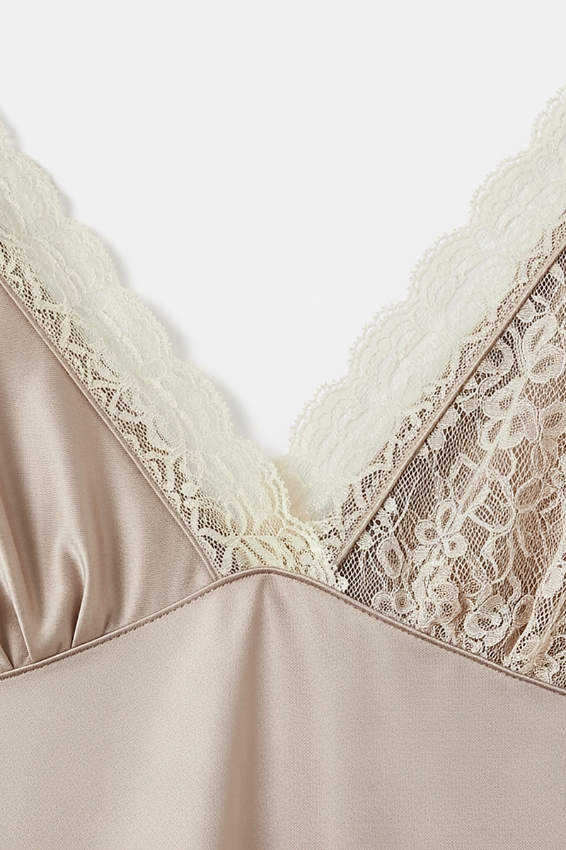 A: The bodice is designed to be bra-friendly with standard undergarments. The lace skirt has a delicate sheerness, adding to its allure, but it offers appropriate coverage for most occasions.